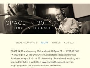 GRACE IN 30 is a radio program and podcast whose mission is to see to it that no one misses out on God’s grace. The program provides compelling examples of grace in action and a spark to get more people expressing it. The program airs live every Wednesday at 6:00 p.m. ET on WERA-LP, 96.7 FM in Arlington, VA and www.wera.fm, and is rebroadcast the following Sunday morning at 8:30 a.m. ET.